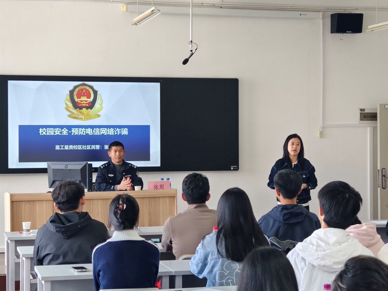 张周警官以我校近期涉诈受害案例为例,向在场师生分析了当前电信网络诈骗的严峻形势和常见手法。结合PPT展示与案例分析,他详细介绍了诈骗分子如何根据受害者的心理和行为特点,利用虚假兼职、网络购物、虚假投资理财、冒充公检法等十余种手段实施诈骗。同时提醒广大师生切忌因小利出售、转让电话卡和银行卡,避免在无意中成为犯罪团伙的帮凶、触犯法律。他强调,防范诈骗的关键在于提高警惕,不轻信陌生人的信息和要求,遇到可疑情况及时报警。他特别指出,大学生群体由于社会经验不足,往往容易成为诈骗分子的目标,因此更要时刻保持清醒头脑,加强防范意识,保护好自己的个人信息和财产安全。