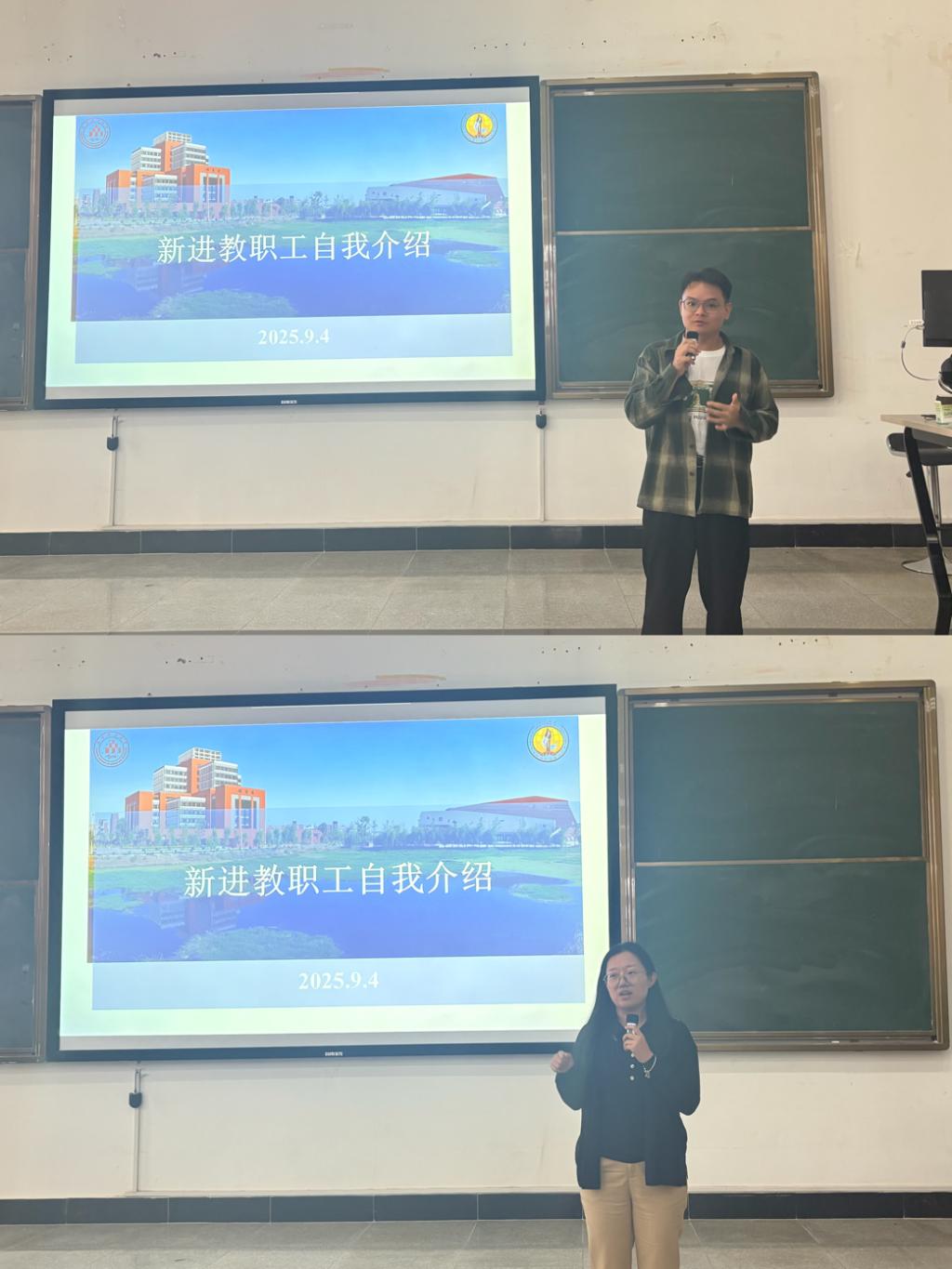 第三阶段由学院新进校专任教师进行自我介绍。毕业于香港教育大学的赵莹博士、北京外国语大学的袁雪寒博士分别介绍各自的教育背景、科研经历与研究方向。他们表示将积极加强与其他教师之间的交流互鉴,共同为学院的学科建设和学术科研发展贡献力量。