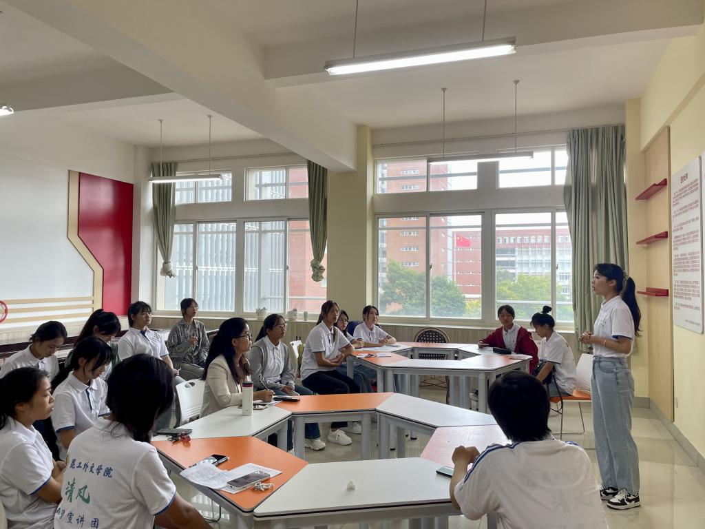 培训结合“吉祥STAR”第二届青年短视频创作营海选活动开展。呙晓薇老师到场全程观看了宣讲团成员的演讲表现,随后面向宣讲团成员开展演讲技巧提升讲座。呙晓薇老师结合其丰富的演讲经历,紧扣宣讲团“讲好中国故事,传播好中国声音”的主线任务,针对宣讲团成员存在的技术性问题进行一对一指导。通过剖析具体的演讲事例、开展现场互动交流等方式,详细讲解了演讲的基本礼仪、具体的演讲表达方式、与观众互动的技巧、应对突发情况的有效方法等系列内容,充分将演讲技巧与现场练习相融合,帮助宣讲团成员提升演讲技巧。呙晓薇老师对“清风”双语宣讲团成员的专业素养和基础表达能力表示肯定,并鼓励所有宣讲员把握每一个自我展现的机会,不断锤炼演说技巧、提升演讲水平。