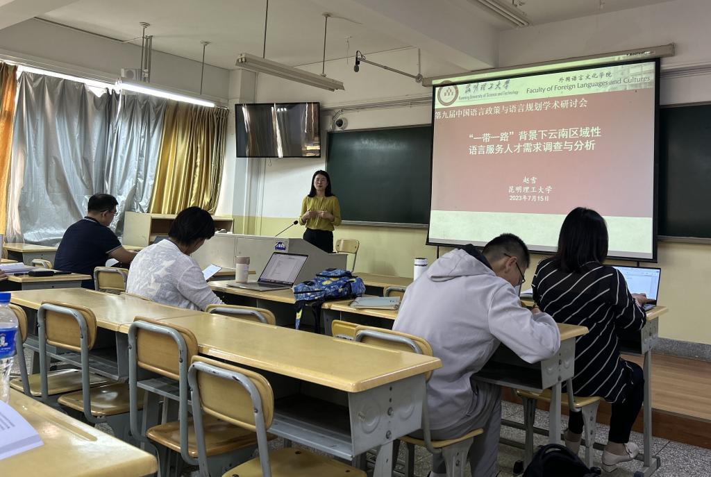 7月15-16日,以“语言智能时代语言规划问题”为主题的第九届中国语言政策与语言规划学术研讨会在云南财经大学凌云楼报告厅举行。新利电竞官网登录欧亚语教研部系主任曾婧带领学院创新创业项目小组师生共6人参加线上和线下会议。