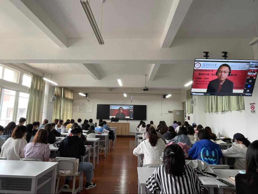 5月10日下午,英国利兹大学终身讲席教授、翻译学中心主任王斌华教授应邀为我校师生作了一场题为 “翻译在中国‘走出去’进程中的重要作用”的线上学术讲座。新利18备用官网教师、翻译硕士研究生和英语类专业本科生以及来自全省其他高校的百余名师生参加了讲座。