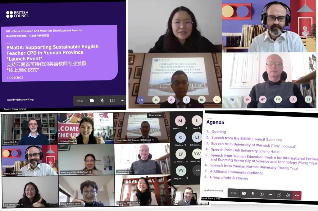 4月14日下午,新利18官方客服王英教授携项目研究团队参加由英国大使馆文化教育处主持召开的 “高质量英语教师专业发展—中英联合研究(云南)项目(2021-2022)”线上启动仪式,并在会上作交流发言。
