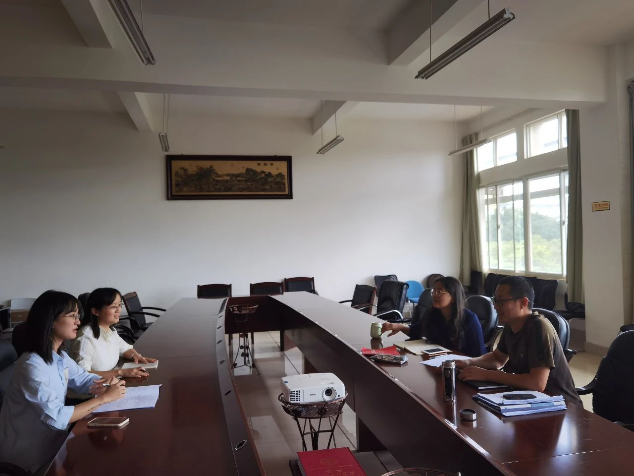 外文学院领导一直高度重视“传帮带”活动,在两位教师课堂展示后,学院党政领导与她们进行了座谈和深入沟通,欢迎两位老师加入外文学院大家庭,希望她们多付出、多奉献,坚持学习,尽快投入教学和科研工作,同时关注师德师风和教书育人。