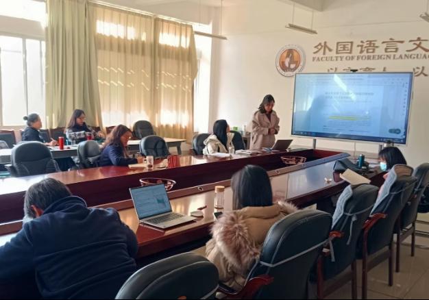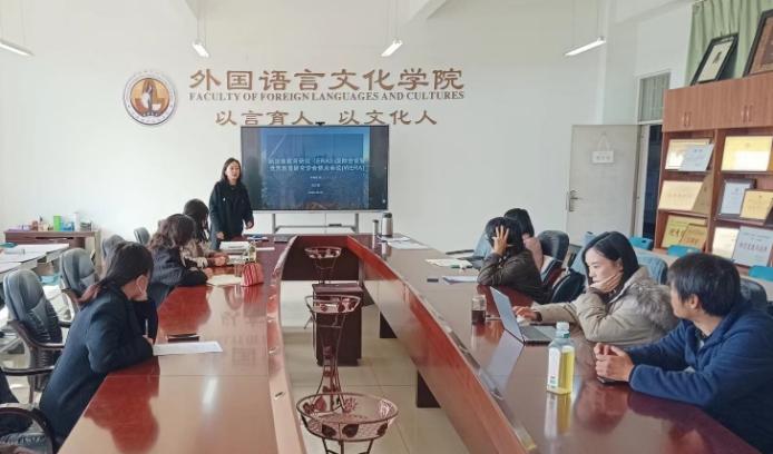 和方圆博士就参加新加坡教育研究协会主办的ERAS国际会议进行了分享,对会议注册、参会类别、会议主题、主要内容等进行了详细介绍,有助于推动学院教师拓宽国际视野,了解国际英语教育和教师发展领域研究和实践的新进展。黄漪澜博士就参加全国新文科背景下高校外语教育教学改革与专业建设论坛进行了分享,对国内高校“外语+”复合型人才培养模式的先进经验进行了总结汇报。马倩副院长对西北工业大学国家级英语一流本科专业建设的经验与模式进行了领学,全体教师对“微专业”创新模式以及助推学校“双一流”创建的发展思路有了进一步思考和认识。