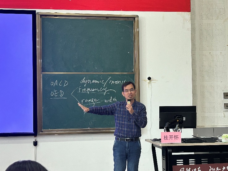 11月14日下午,新利18备用官网在博文100报告厅举办明德社科大讲坛,邀请厦门大学外文学院副教授杜开怀博士开展题为“英国‘五大’学习词典管窥”的专题学术讲座。讲座由李泽生副院长主持,王英院长及学院100余名师生参加。