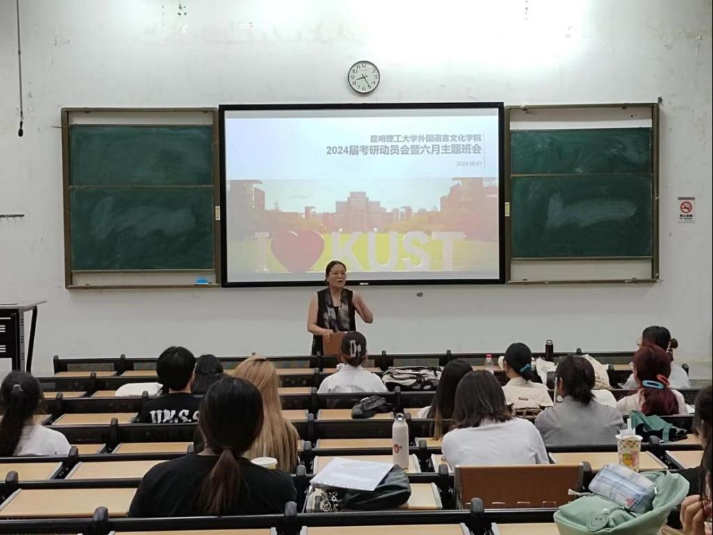 2023年6月1日,新利18备用官网在中心区教学楼100教室举行2024届本科生考研动员会,新利18备用官网院长王英、党委副书记邱清遐、2024届全体本科生及班主任、辅导员共计一百余人参加会议。