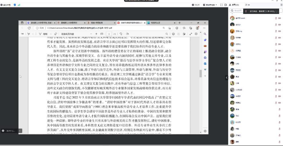 本次会议重点针对英语专业2023版培养方案校外专家评审意见和专业办学特色进行专题研讨,综合考虑我校学生生源基础、师资情况、人才培养目标等方面讨论课程设置,确定培养方案的总体思路为坚持英语专业学科内涵,夯实英语语言基本功,同时依托学校理工科校本特色,设置科技类和工程类英语语言能力与应用相关课程,培养学生的科技人文素养。会议还对课程大纲撰写、2024届毕业生的毕业实习和毕业论文、本科教育教学审核评估迎评促建等重点工作进行了安排和部署。