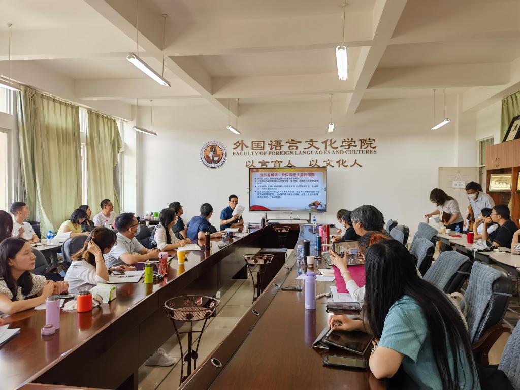 2023年6月1日上午,新利18备用官网在博文楼312会议室召开党支部书记工作例会暨党务工作业务培训会议。会议邀请学校党建督导张鑫就党员发展和会议记录工作作专题辅导。会议由外文学院党委书记刘建平主持。