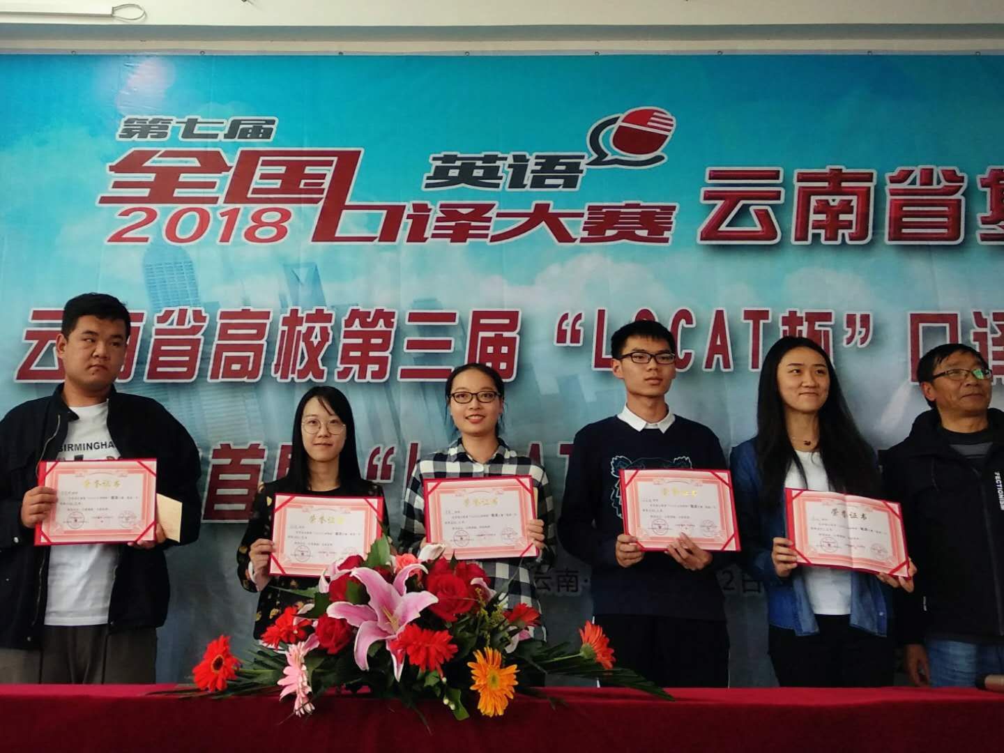 2018年4月22日,第七届全国英语口译大赛云南省复赛暨云南高校第三届“LSCAT杯”决赛在昆明医科大学隆重举行。新利18官方客服外文学院2016级翻译硕士三位研究生在复赛中表现突出,成绩优秀,分别获得第一名,第三名和第四名。他们将于五月份同来自其他在滇高校的六位同学代表云南省参加成都的西南大区赛。祝贺我院的三位研究生取得优异成绩!