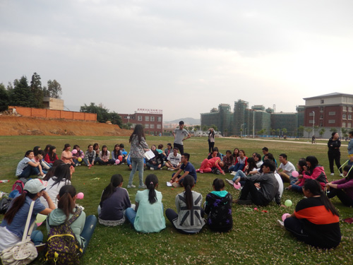 2014年4月28日周一17:30,新利电竞官网登录于呈贡校区公教楼前草坪上举行了本学期第二次团日活动的最后一项内容。本次团日活动的主题为“生命虽易,精彩不易,且行且珍惜”,旨在通过此次团日活动呼吁同学们平时积极锻炼身体,增强体质。外文院2013级全体学生都积极参加了此次团日活动。
