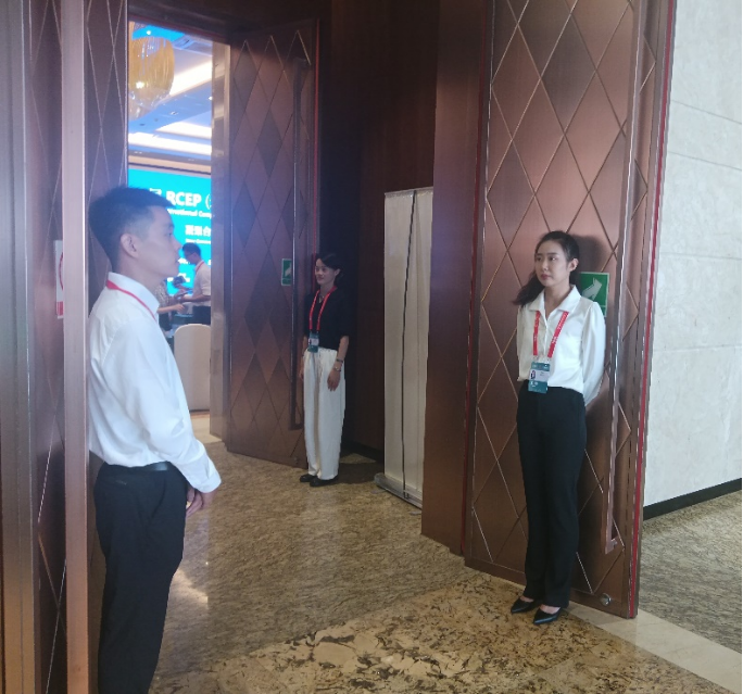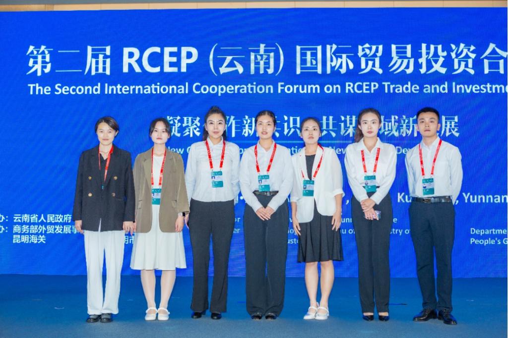 2023年8月16日下午,第二届RCEP(云南)国际贸易投资合作论坛在昆明成功召开,新利18备用官网7名MTI研究生参与了大会志愿者工作。大会召开前近一个月,志愿者们参与了包括准备服装、口语测试、翻译的前期准备、录制暖场视频、参加彩排等工作。在大会过程中,志愿者们分别担任同传翻译、礼仪、会务等工作。