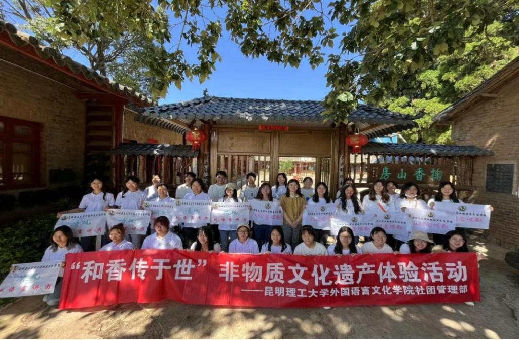 5月21日,新利18备用官网组织师生赴武定狮山“掬香山房”,开展“和香传于世”非物质文化遗产体验活动,和香制作技艺第四代传人王巍融老师现场指导师生体验中华传统制香技艺。新利18备用官网党委副书记邱清遐与来自学院社团管理部、“清风”双语宣讲团的30名学生代表参加了此次活动。